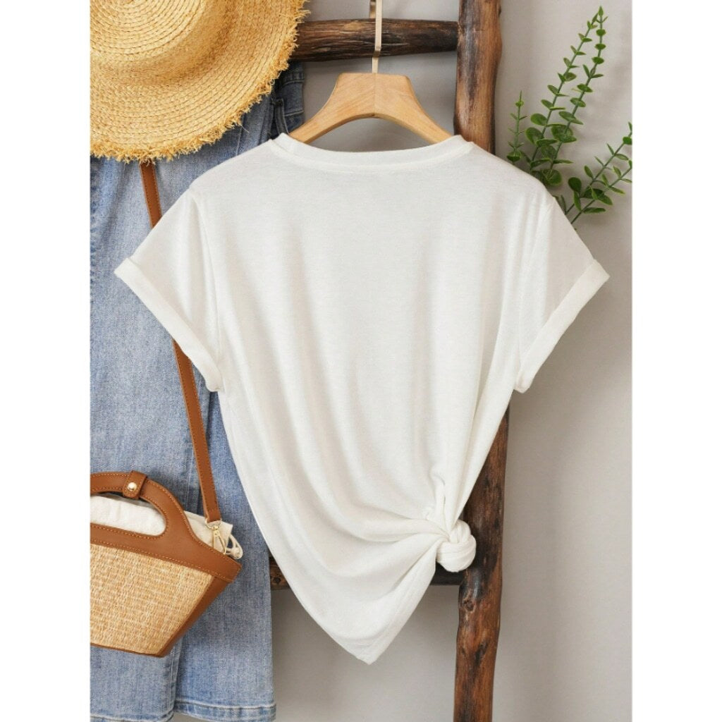 Simple and empowering, this SHEIN tee features a bold “I AM” slogan graphic on soft white fabric—perfect for everyday comfort with a statement.