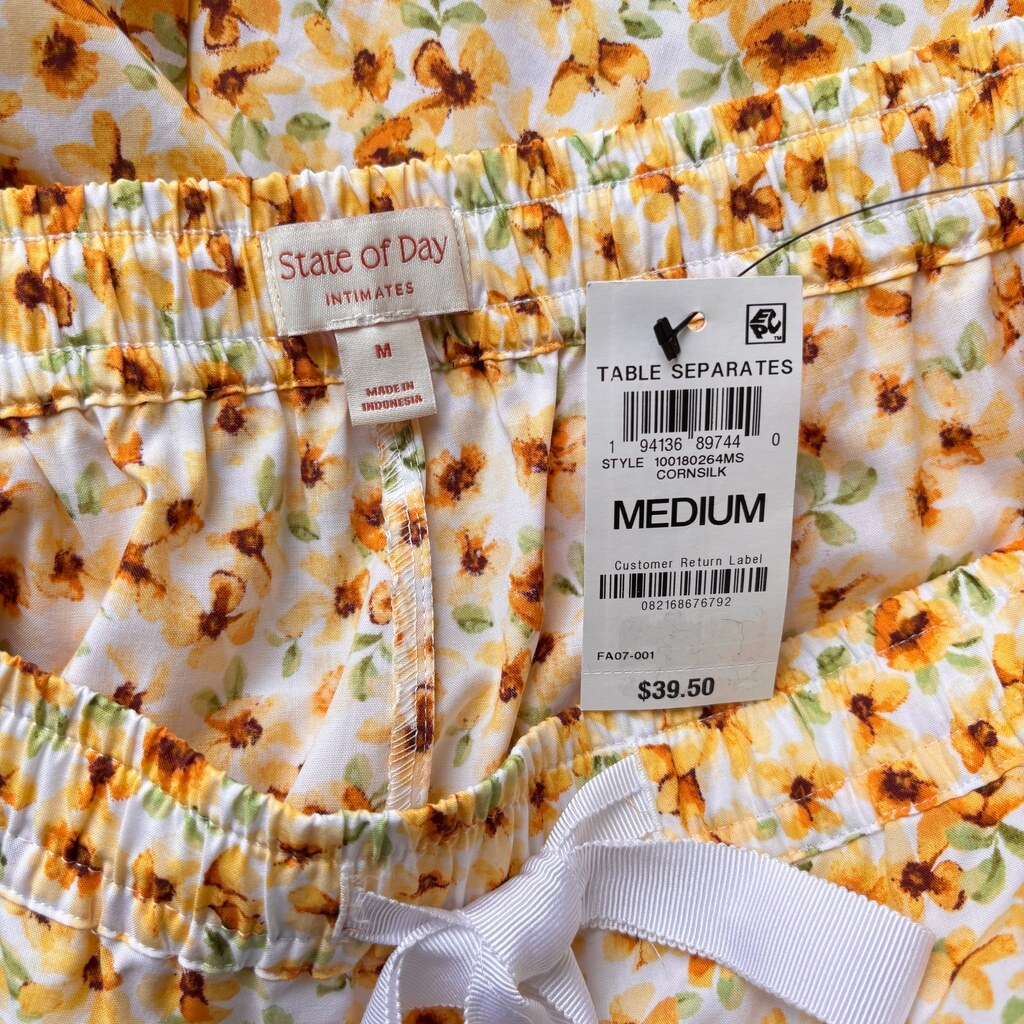 State of Day Women's Yellow Floral Printed Poplin Pajama Pants w/ Drawstring NWT