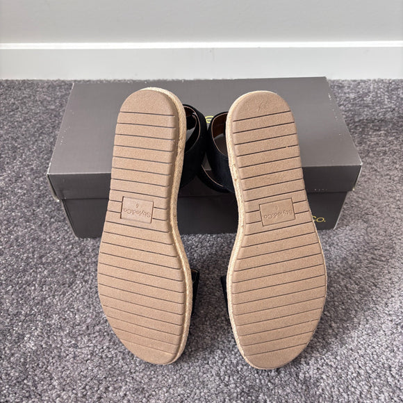 Style & Co Women's 6 Black & Tan Ankle-Strap Espadrille Flat Sandals NIB