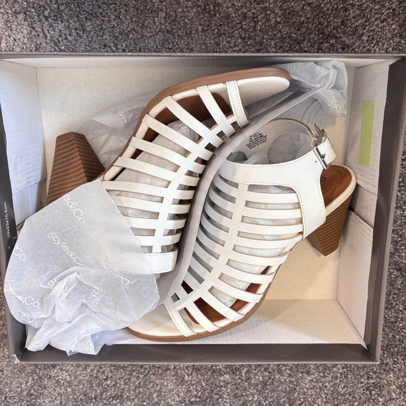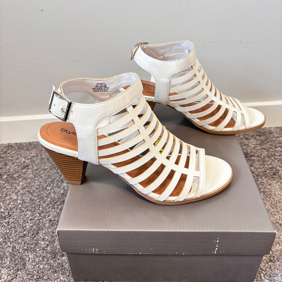 Style & Co Women's 7 White Caged Upper Cone Heel Dress Sandals / Shoes NIB